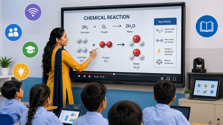 A smart classroom uses digital tools like interactive panels, internet access, and multimedia content to improve teaching and learning. Teachers use a smart board to display lessons, write notes, and show videos. Students interact with content in real time, which makes learning more engaging. Instead of only using textbooks, teachers combine visuals and activities to explain concepts better. This setup improves understanding and participation. Schools also save time because teachers can use ready-made content. A smart classroom creates a modern learning environment where both teachers and students stay actively involved in the learning process.